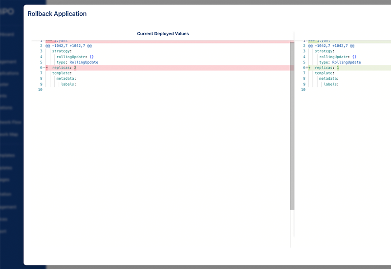 With Gripo’s Helm Value Diff feature, compare changes easily.